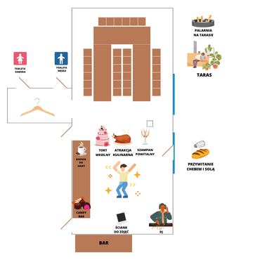 – miejsce na tort weselny i pokaz kulinarny,