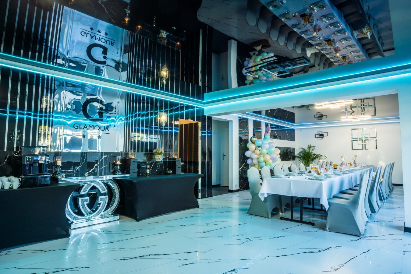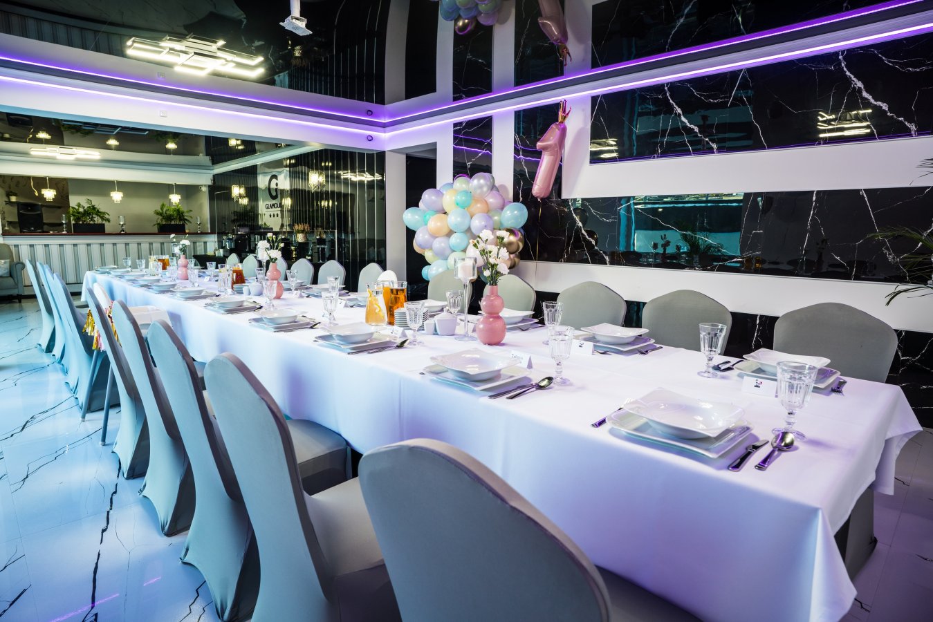 Całość tworzy spójną, luksusową przestrzeń dla Par Młodych, które marzą o eleganckim przyjęciu w nowoczesnym stylu – bez przepychu, ale z wyraźnym charakterem.